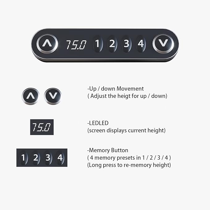 - Height Adjustable Lift: Fully motorized lift from 27 to 45 Inches height, at a speed of 1.2"/second with low noise (under 50 dB) while running. 4 Positions memory functions lift conveniently and quickly.