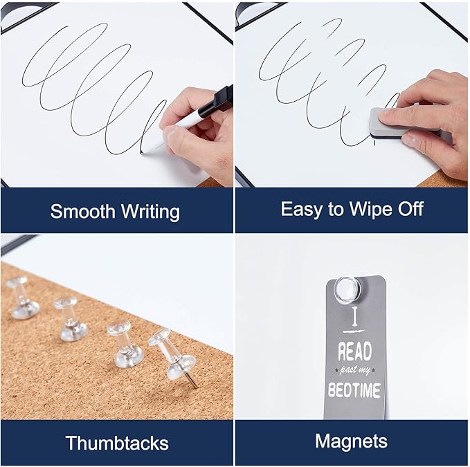 - EXTRA ACCESSORIES: This bulletin board comes with 2 dry-erase markers, 1 eraser, 2 magnets, and 5 thumbtacks/push pins.
