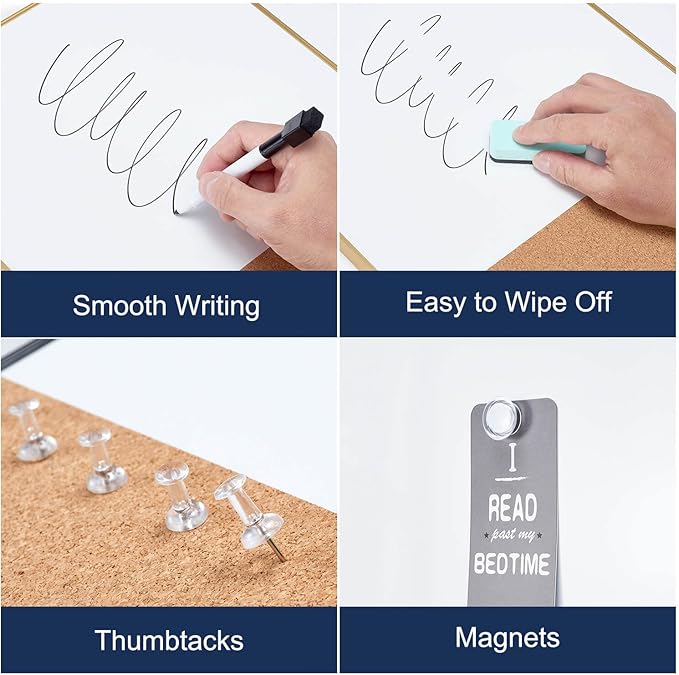 - EXTRA ACCESSORIES: This bulletin board comes with 2 dry-erase markers, 1 eraser, 2 magnets, and 5 thumbtacks/push pins.