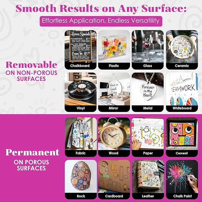 - Versatile Use Everywhere: From grocery lists to decor, our liquid chalk markers are super versatile. Great for weddings or scenes, these chalkboard marker pens work on glass, chalkboards, and beyond, making creativity easy