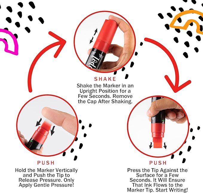 - Vivid Neon Colors: Add some excitement to your holiday notes with our jumbo bright chalk markers in neon shades. This jumbo chisel tip chalk pen is perfect for decorating car windows or making big, eye-catching signs. These chisel chalk markers in neon colors shine in the winter