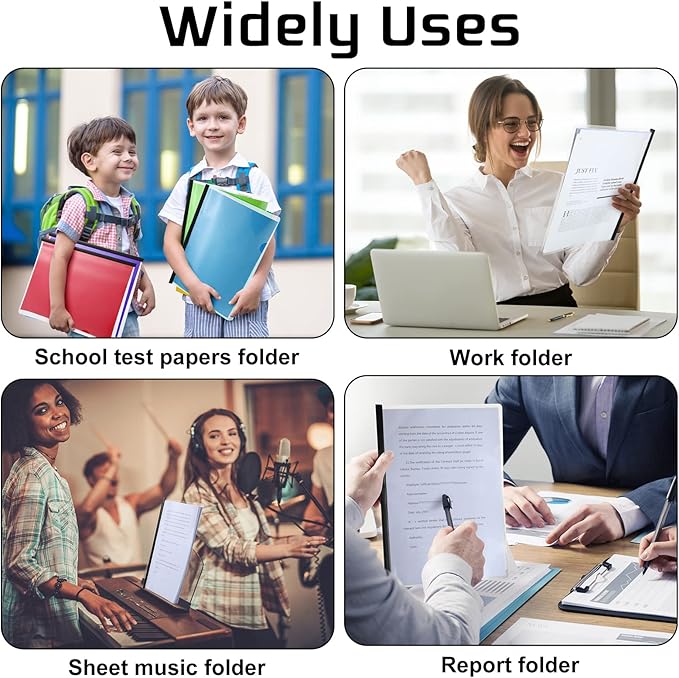 - Widely Uses: clear resume covers with slider bars can store documents, files, plan calendars, business plans, design drafts, book reports, sheet music, test papers, and you can apply it in the hospital, office, home, concert, speech and more