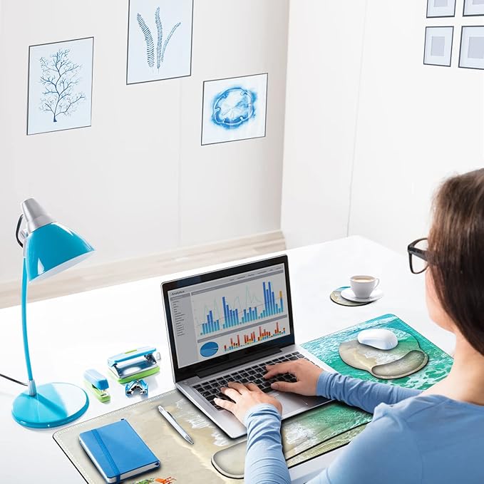 - 【4-in-1 Mouse Pad Set】Ergonomic mouse pad includes desk pad (35x15.5inch), keyboard wrist rest(17.3x3.3inch), mouse pad wrist rest(9x10inch), cup coaster(3.9x3.9inch).No need to buy separately, at a super cost-effective price. This desk pad for keyboard and mouse, is large enough to fit your mouse, gaming keyboard, and other desk items. Keep a clean, uncluttered desk. This helps to improve the gaming experience or work efficiency in the office.