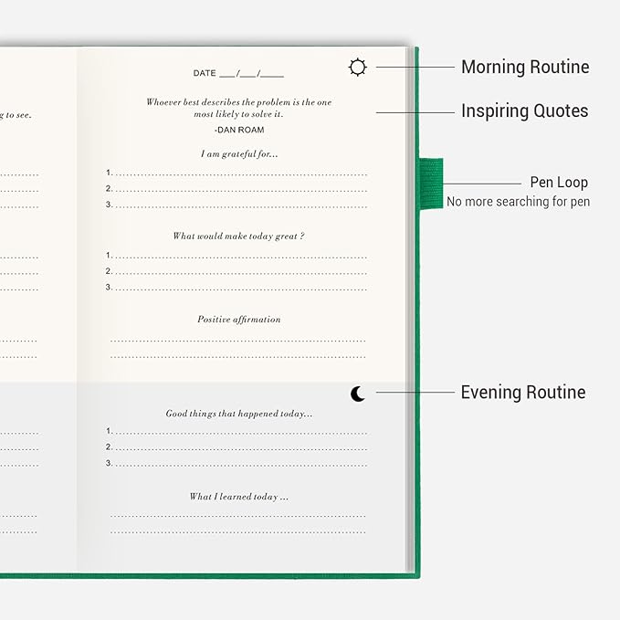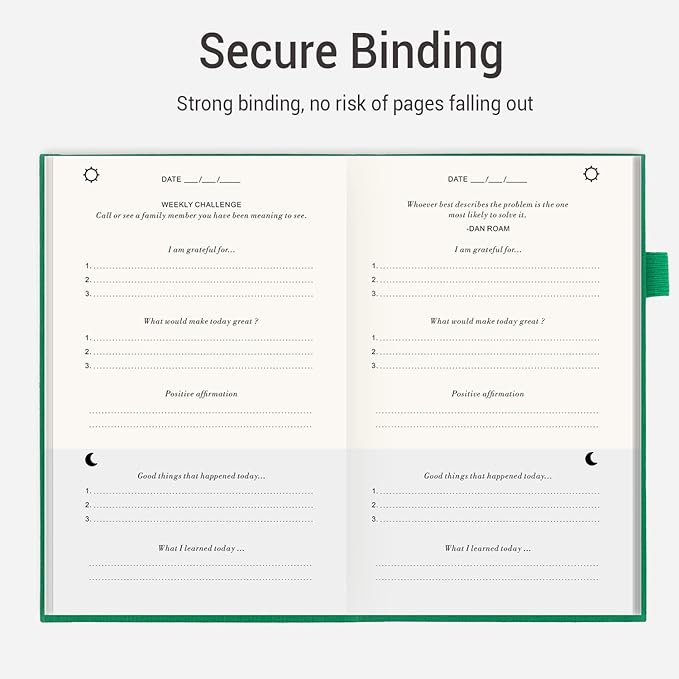 - Undated & Strong Binding- The inside of the daily journal is undated, which means you can start whenever you're ready! And it has thick pages and strong bindings, with no risk of pages falling out!