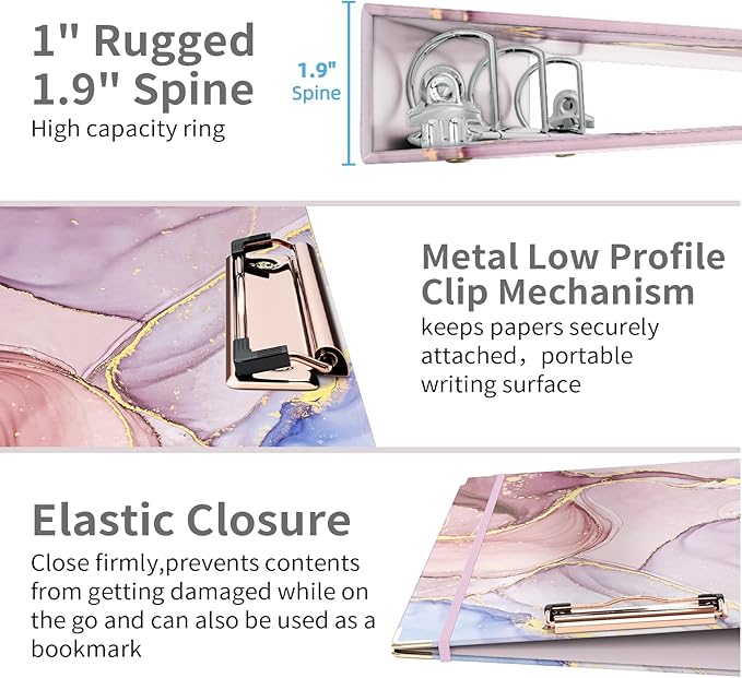 - 【Clipboard & Elastic Closure Design】Letter-size clipboard with durable cardboard base provides a hard, portable writing surface;Low-profile clip can hold up to 100 sheets of 20-pound paper. In addition, the binder's elastic closure not only can close the binder firmly, but also acts as a bookmark.