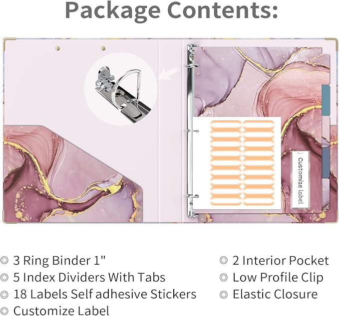 - 【Binder with Dividers】Binder comes with 5 index dividers with tabs and 18 custom label stickers for easy viewing. Features two interior pocket to store letter size papers and important loose documents.