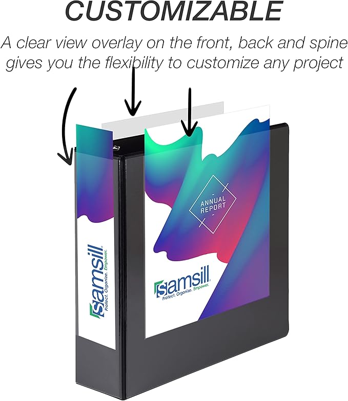 - Clear View Cover: The binder’s front, back, and spine overlays are designed for easy customization. Perfect for creating personalized presentations, professional reports, and organized school projects. It’s a versatile choice for anyone looking to enhance document presentation and labeling.