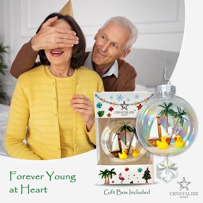 - Birthday Gifts for Everyone: These Birthday Ornaments comes with many designs and different themes and scenery. We have Cardinal Bird, White Owl, Wolf, Mermaid, Shark with Turtle, Yellow Ducks, Elephants, Unicorn, Blue Fairy, Pink Fairy, Baby Giraffe, Santa with Snowman or a Surfboard, Rudolph, Polar Bear and many more! Each ornament is embellished with artificial flowers, tree, or Christmas tree and small figurines inside to enhance your decoration.
