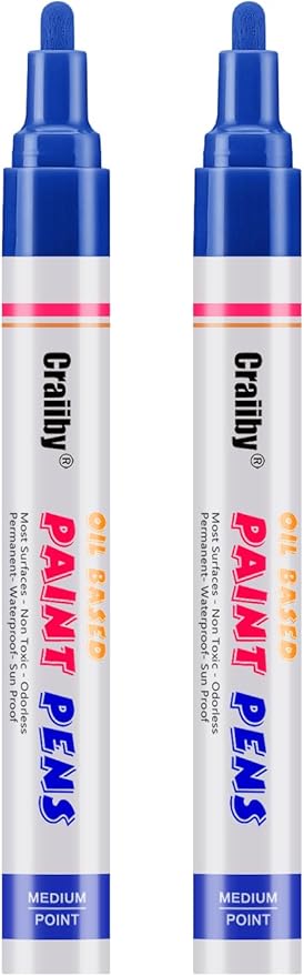 Blue Paint Markers, 2 Pack Oil-Based Waterproof Quick Dry Permanent Paint Pen Set for Rocks Painting, Wood, Fabric, Plastic, Canvas, Glass, Mugs, Metal, Tire, Stone, DIY Craft
