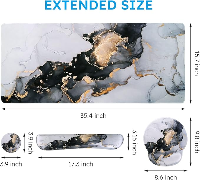 - 【Large Mouse Pad Size】Extended mouse pad:35.4" x 15.7",wrist rest for computer keyboard:17.32" x 3.15" x 0.98",wrist rest for mouse:8.66" x 9.84" x 0.86",Coaster:3.93" x 3.93".