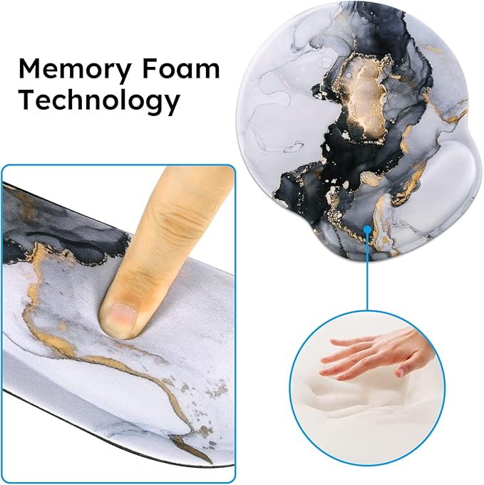 iCasso Desk Mat, Gaming Mouse Pad Wrist Support Set,4in1 XXL Large Mousepad + Keyboard Wrist Rest+Mouse Wrist Rest+Coaster Set with Ergonomic Design for Home Office Table Computer-Grey Ink Marble