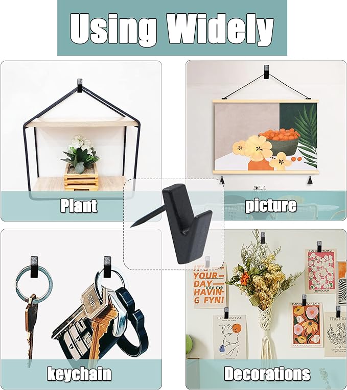 - PRACTICAL DESIGN - Our thumbtack hooks can save space by hanging some lightweight items, while is convenient for picking and placing them. In addition, compared to other nails that are nailing into the wall vertically, our tack hooks have a proper angle to ensure that it will be firmer when nailing into the wall.