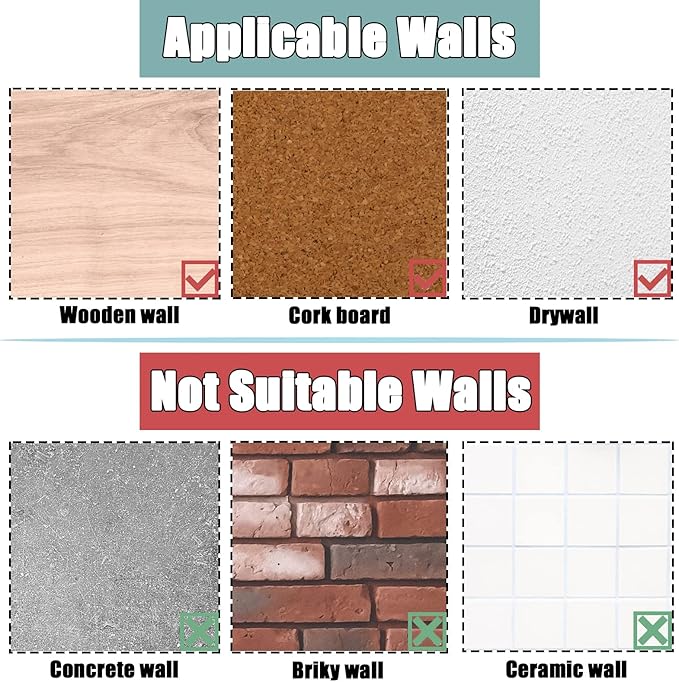- APPLICABLE WALL - These wall pins are made of zinc alloy which is strong and corrosion resistant. Work great for dry wall, wooden wall, corkboard, and other soft platform. But not suitable for concrete wall, ceramic wall, cement wall, or other hard platform.