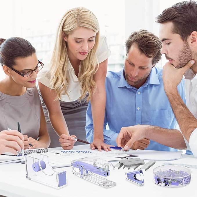 - Quality materials: the stapler, tape dispenser and stapler remover are mainly made of acrylic and metal, clear and bright; Touch smooth and comfortable, not easy to break, elegant and beautiful, very suitable for desktop office supplies