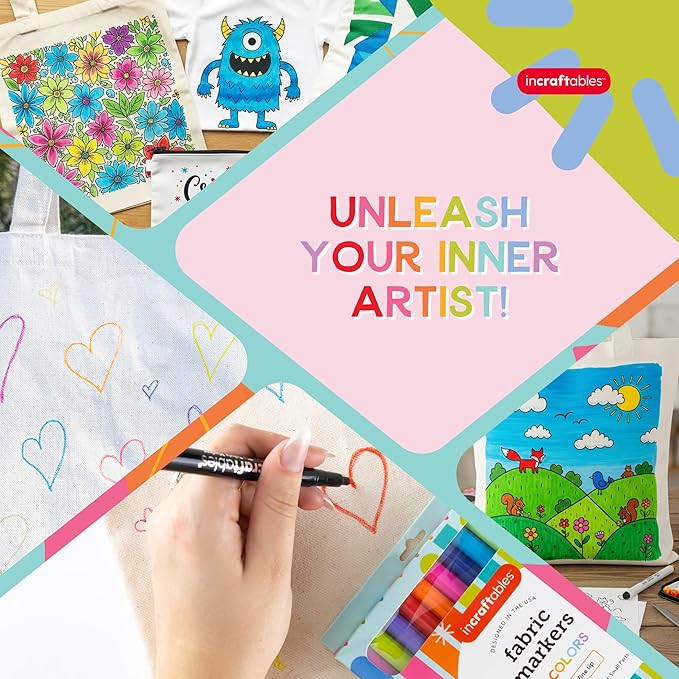 Incraftables Fabric Markers - 12 Pack Permanent Non-Bleed Markers for Clothes, Kids Crafts, Canvas Tote Bags, Quilting, & More - Vibrant Fabric Paint Pens