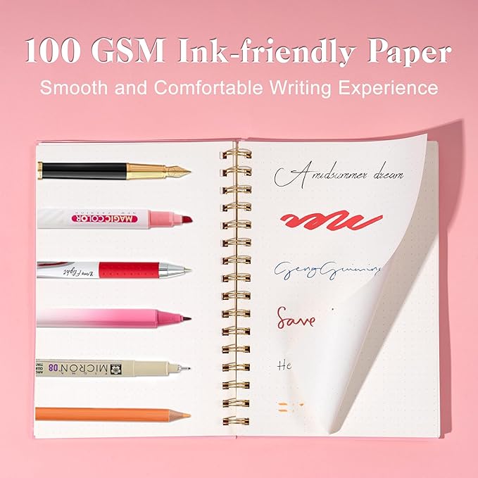 - 160 Pages Thick Dot paper--This spiral dotted notebook uses 100gsm premium acid-free paper,5 x 5 mm grid,which is thicker than traditional paper,can write on both sides,no ink feathering and bleeding.