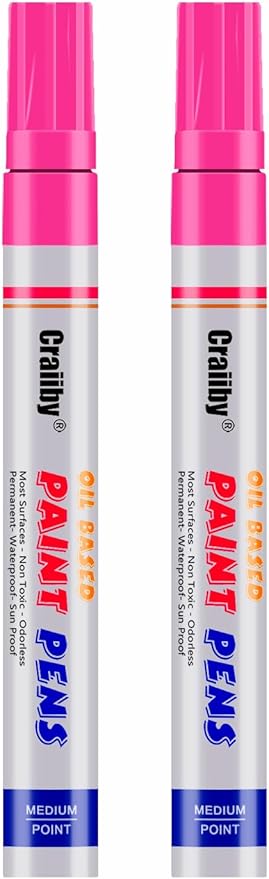 Pink Paint Markers, 2 Pack Oil-Based Waterproof Quick Dry Permanent Paint Pen Set for Rocks Painting, Wood, Fabric, Plastic, Canvas, Glass, Mugs, Metal, Tire, Stone, DIY Craft