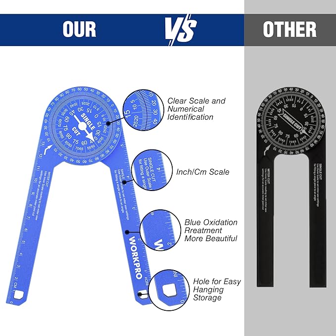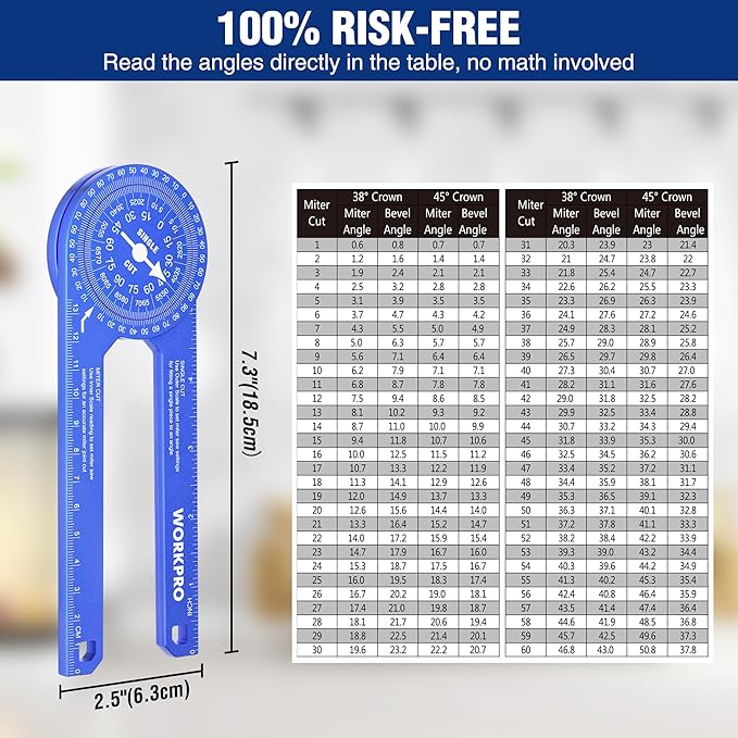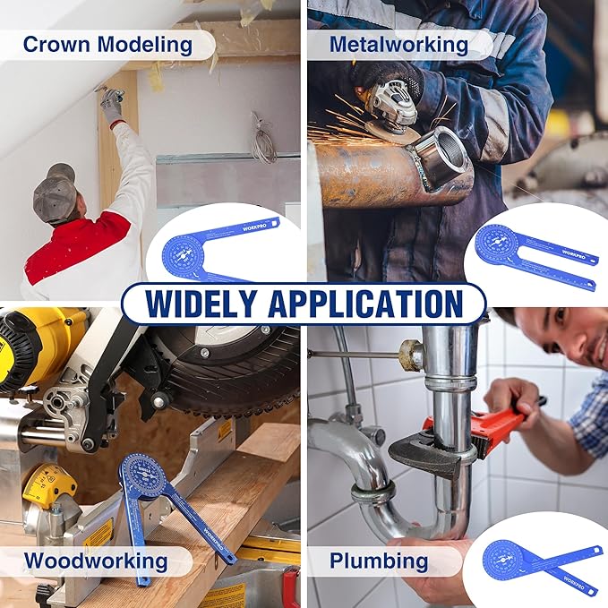 - Wide Application: Whether you are a professional or not, WORKPRO Miter Saw Protractor is excellent for you. It is suitable for crown molding, miter cuts, carpentry, plumbing, metalworking, DIY projects and more