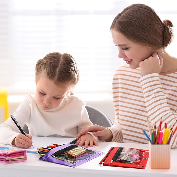 - 3 Ring Pouch: the pencil case has 3 holes for 3 ring binders that can be placed in binders, backpacks, and more; The metal holes allow you to attach the pouch to another item with fasteners or clasps