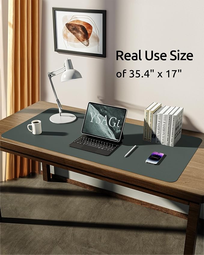 YSAGi Leather Desk Protector, Office Mat, Large Mouse Mat, Non-Slip PU Leather Blotter, Laptop Desk Pad, Waterproof Writing Pad for Office and Home (Dark Green, 35.4" x 17")