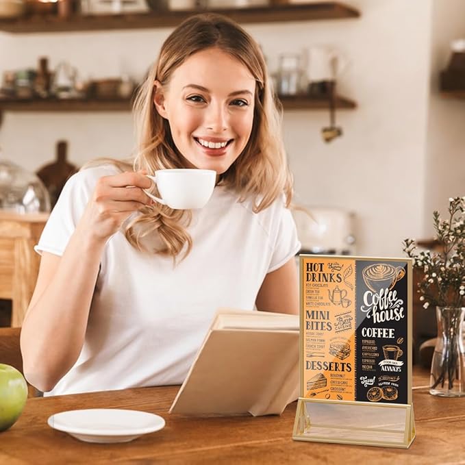 Acrylic Sign Holder 5x7 Gold Display Stand, Clear and Stable Table Plastic Paper Holder, Acrylic Frames for Home Office Shop Photo Frames Exhibition (6pcs)