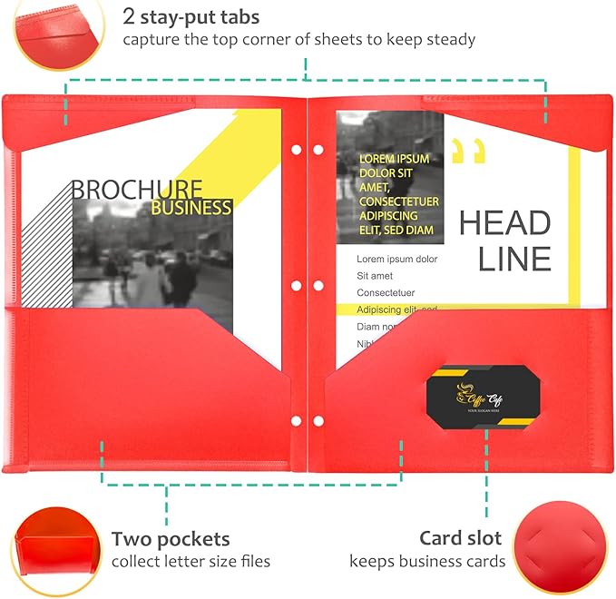 - ✅Keeps your Letter-Size Sheets Steadily: Each plastic folder comes with 2 pockets and one card slot, ideal for collecting your letter-size sheets and business card or student ID. The stay-put tabs on the inside of the pocket folders capture the top corner of your papers so to keep sheets steadily. Organize your files and clean up your messy desktop.