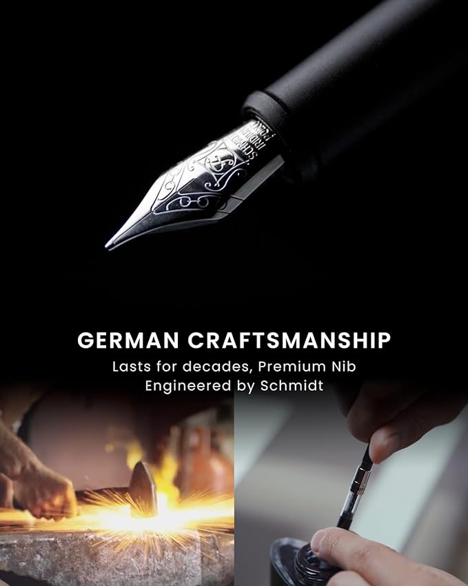 - Addictivve & Silky Writing Experience: Your creativity needs to flow uninterrupted. This 2-In-1 Set comes with extra rollerball pen grip. High-quality rollerball cartridge, and stainless steel fountain pen nib historical Germany pen company with over a century of experience in craftmanship excellence. Thanks to their exquisite inflow design, pure, unbroken lines of thought jump forth from the pen to paper without spills, spotting, or explosions.