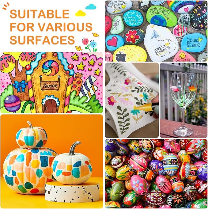 - PERFECT GIFT IDEAL: The use of simple methods, suitable for newcomers to play creative,Acrylic paint pens art supplies will be a personalized gift for your loved ones and painting rock lovers and create amazing art gifts for birthdays, Easter, Halloween, Christmas, Valentine's Day, Thanksgiving, New Year or special holiday gifts. DIY unique gifts to bring color to your life and create decorations!