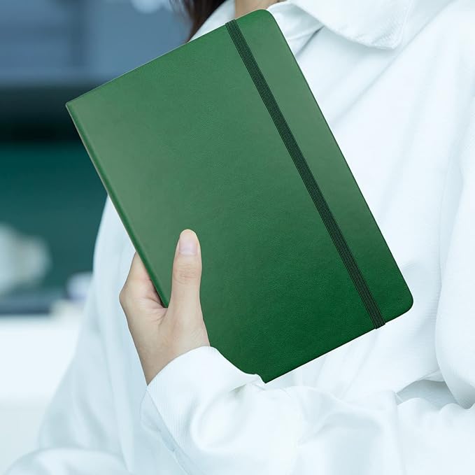 Deziliao Hardcover Notebook Journal 160 Pages, Lined Journal Notebooks for Work, 100Gsm Premium Thick Paper with Pocket, Medium 5.7"x8.4", Christmas Gift(Dark-Green, Ruled)