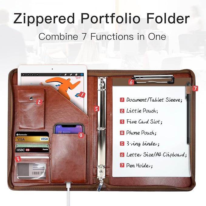 - Exquisite & Professional Design: Make a lasting impression with the versatile and spacious zippered leather portfolio from WRIYES padfolios. Combining sophistication and practicality, this portfolio helps you stay organized and make your business meetings more efficient and complete.