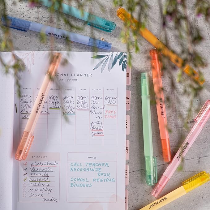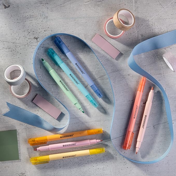 DIVERSEBEE Dual Tip Bible Highlighters and Pens No Bleed, 8 Pack Assorted Colors Quick Dry Highlighters Set, Cute Markers, Bible Study Journaling School Office Supplies and Accessories (Pastel)