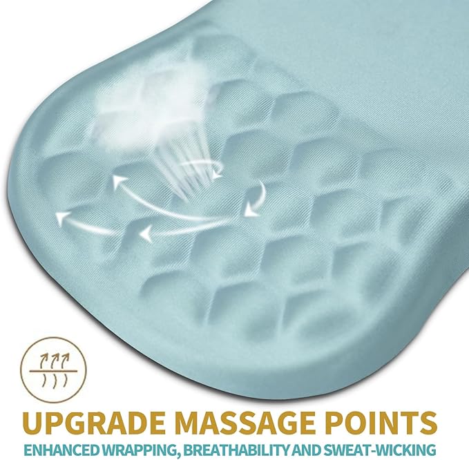 - 【Ergonomic Massage Design】The innovative ergonomic 8-degree slope and massage bump design perfectly support the wrist and palm. Massage bump design can effectively relieve wrist pain and fatigue, improve carpal tunnel syndrome (CTS), strengthen the air circulation between wrist and mouse pad, prevent sweating, and keep your wrist in the most comfortable state.