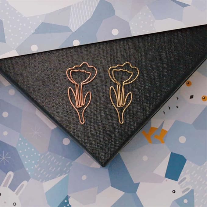 OWLFAVO 36pcs Flower Shape Paper Clips with Clear Box, Rose Gold and Yellow Gold, Funny Cute Paperclips Bookmarks Planner Clips for Fun Office Supplies School Gifts Wedding Decoration