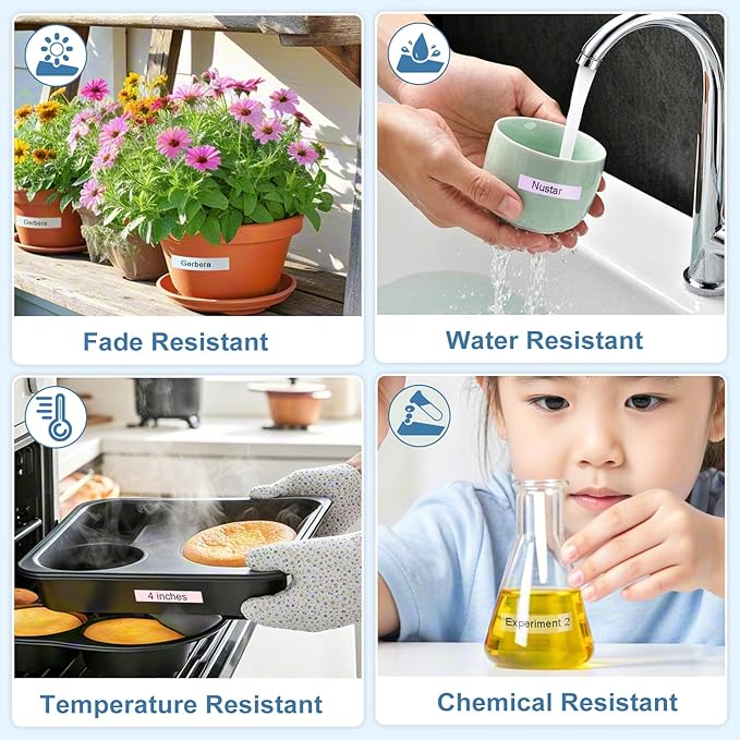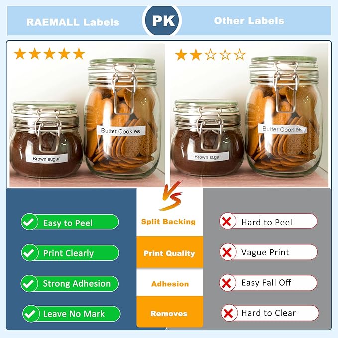 - Easy to use: These 12mm TZe TZ Label Tape comes with split backing design, the backing tape is split lengthwise in the middle for easy peeling, No Sticky Residue Remains When the Labels are Removed. Since these labels are laminated, RAEMALL labels are waterproof, fade-proof, resistant to high and low temperatures, and scratch-resistant