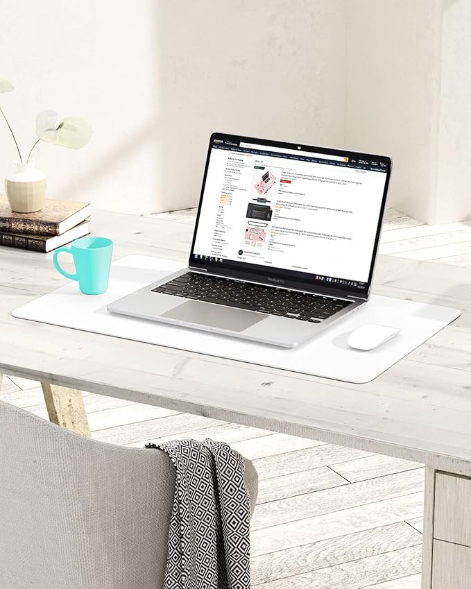 YSAGi Non-Slip Leather Desk Pad, Waterproof Laptop Computer Desk Keyboard Mat, Table Protector Blotter Mat, Large Mouse Pad for Office/Work/Home/Decor(White, 23.6" x 13.7")