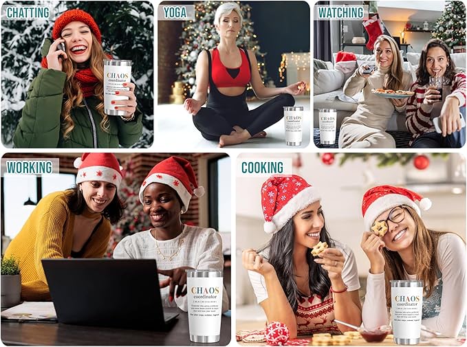 TEEZWONDER Christmas Thank You Gifts for Women - Chaos Coordinator 20 oz Stainless Steel Insulated Tumbler with Lid - Employee Appreciation Birthday Gifts for Women Coworkers Boss Teacher Nurse Friend