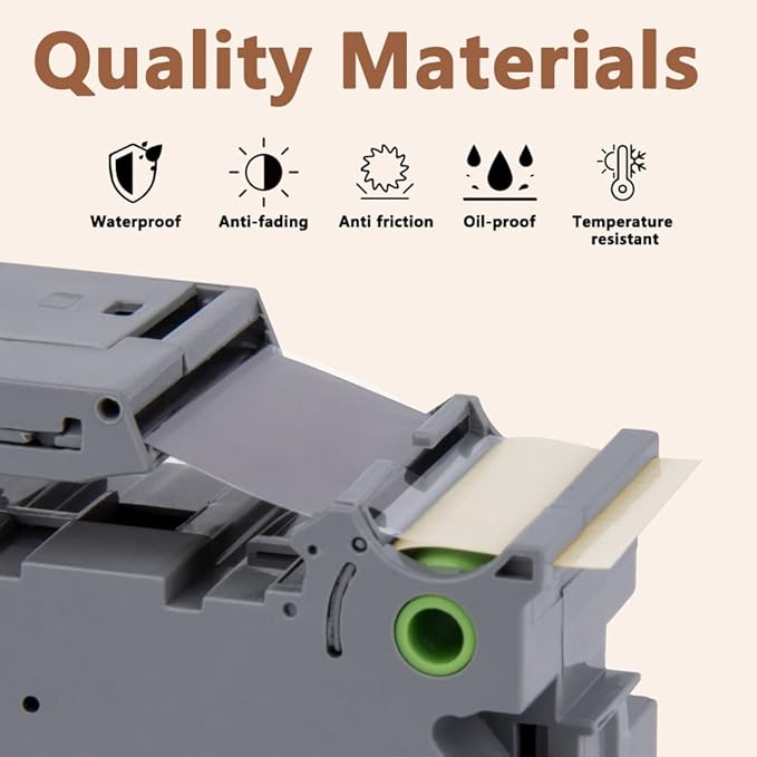 - Product features : Split back, water resistant, fading resistant, abrasion resistant, temperature resistant, strong adhesive. This compatibel label tape 18mm TZe-841 Black on Gold is suitable for indoor and outdoor use