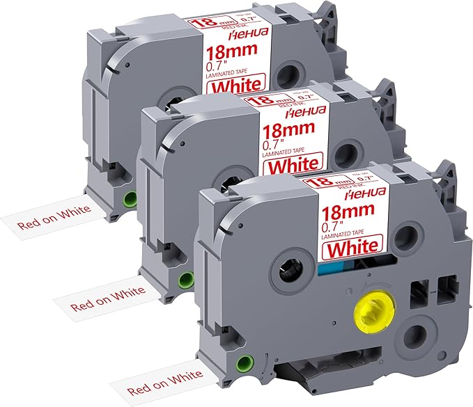 Hehua 18mm 0.7 Red on White Laminated Tape Compatible for Brother Label Maker Tape TZe-242 TZe242 TZ-242 TZ242 for P Touch PT D400 D450 D600 D610 P710BT, 3/4'' x 26.2ft, 3 Pack