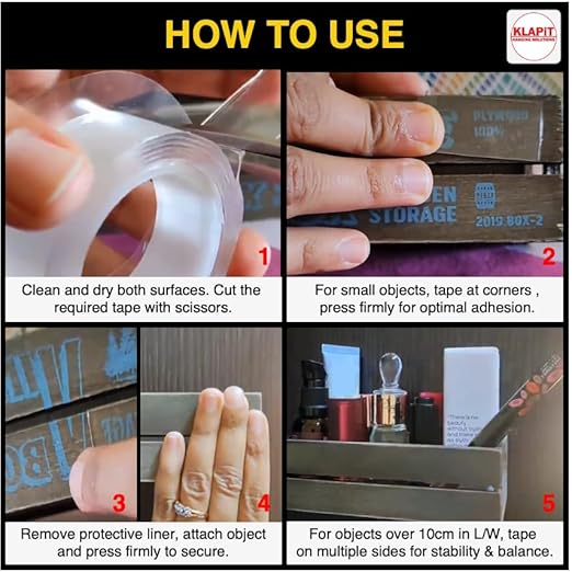KLAPiT Super Tape - Clear Double Sided Heavy Duty Enhanced Nano Technology Holds 50 lb 1.27lb per Inch Multipurpose, Home Office Decor, Kitchen Bathroom Utility, Carpet & Furniture Fixing