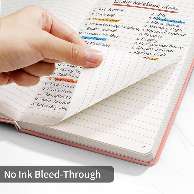 - Multifunctional Cover: The hard cover is made of vegan leather, and designed with a pen loop, an elastic band, two ribbon page markers, an expandable inner pocket.