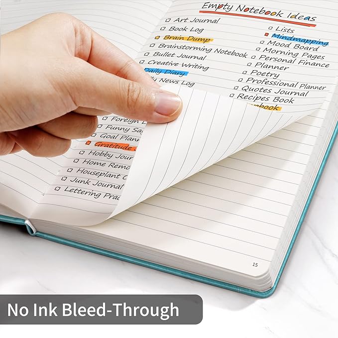 - Multifunctional Cover: The hard cover is made of vegan leather, and designed with a pen loop, an elastic band, two ribbon page markers, an expandable inner pocket.