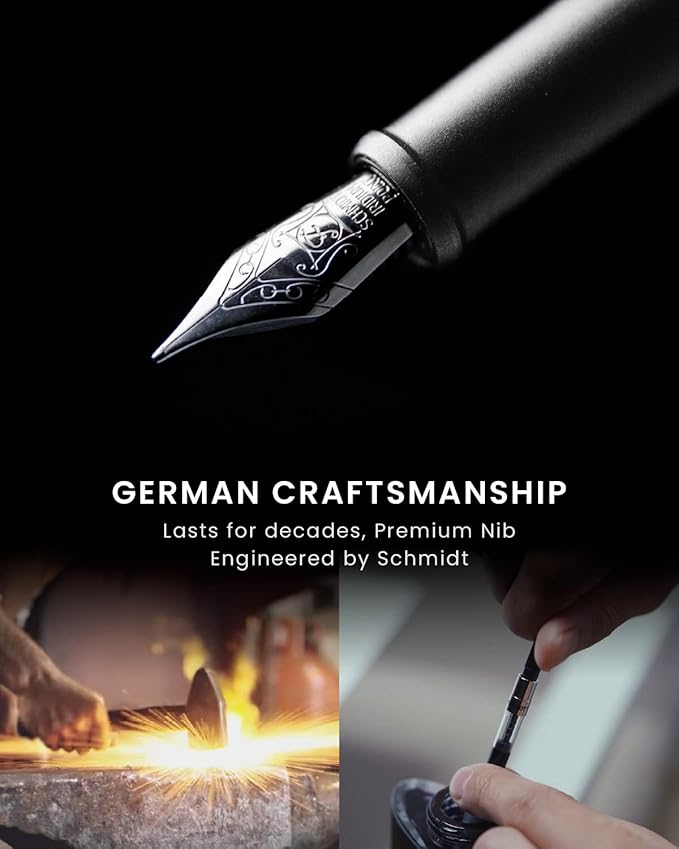 - Addictivve & Silky Writing Experience: Your creativity needs to flow uninterrupted. This 2-In-1 Set comes with extra rollerball pen grip. High-quality rollerball cartridge, and stainless steel fountain pen nib historical Germany pen company with over a century of experience in craftmanship excellence. Thanks to their exquisite inflow design, pure, unbroken lines of thought jump forth from the pen to paper without spills, spotting, or explosions.