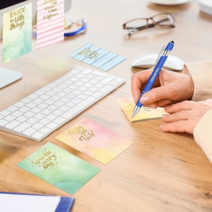 Geyee 24 Pcs Inspirational Sticky Notes with Funny Pens Fun Notepads for Adults Coworkers Nurse 3 x 4 Inch to Do List Notepads with Sayings Pen for Lab Week Gifts Teacher Office Supplies