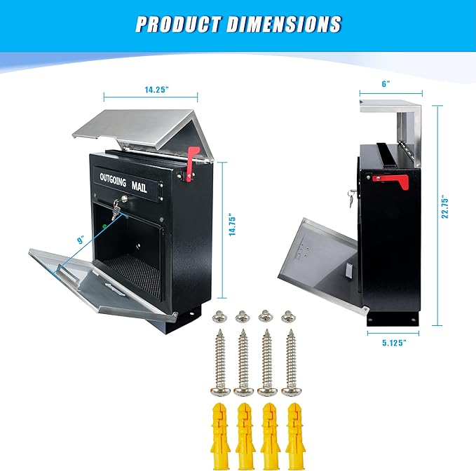- COMMERCIAL AND RESIDENTIAL USE: The possibility of our wall mount mailboxes is unlimited! You can choose to use this drop box as a house mount mailbox, or an utility wall mount mailbox.