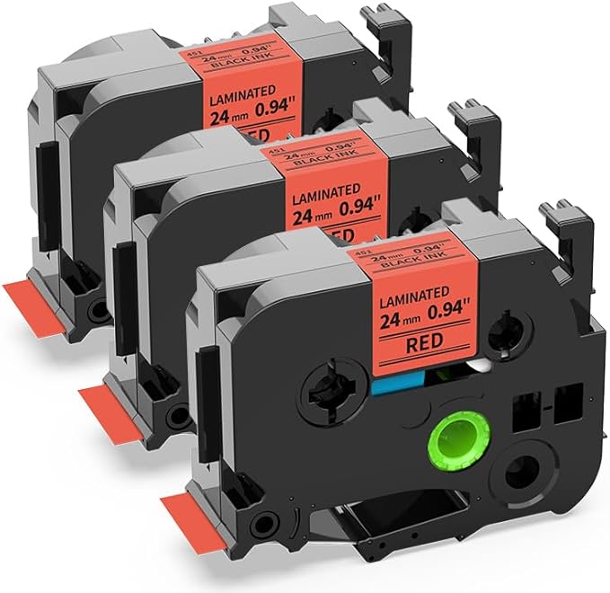 - 3-Pack compatible with brother p touch red label tape TZe-451 TZe451 24mm tze red tape. Color: Black on Red. Width: 24mm (1") Length: 8m (26.2ft)