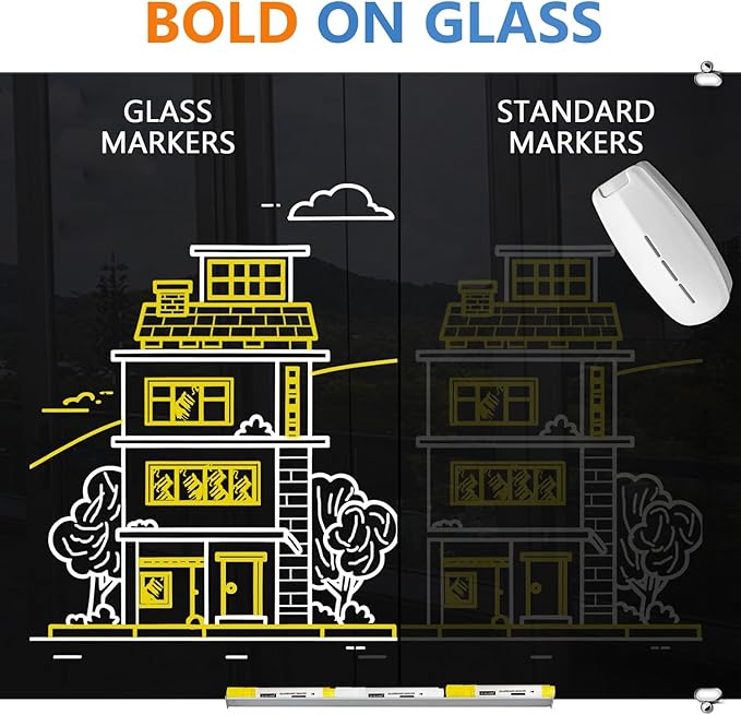 - 【DOUBLE TIP MARKERS】– Bullet Tip and Fine Tip, a smart product that meets all your needs. Glass board dry-erase markers with bullet tips create thick, broad lines that can be easily seen and read, even from a distance. Create thin lines with the fine point tip. The precise lines are perfect for clear, distinct handwriting and detailed drawings