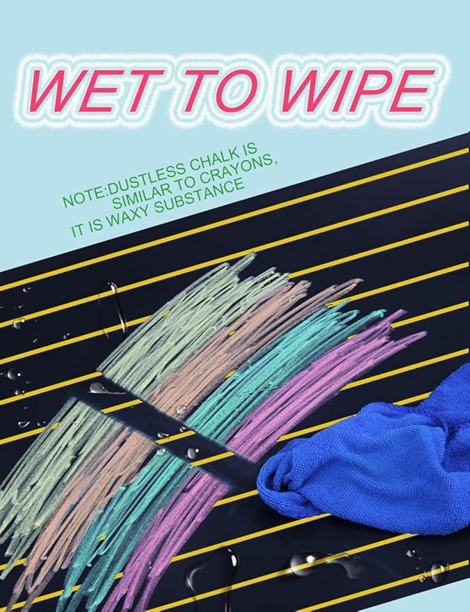 - Easy to Clean: Washable chalk can be wiped clean with a wet cloth or eraser.