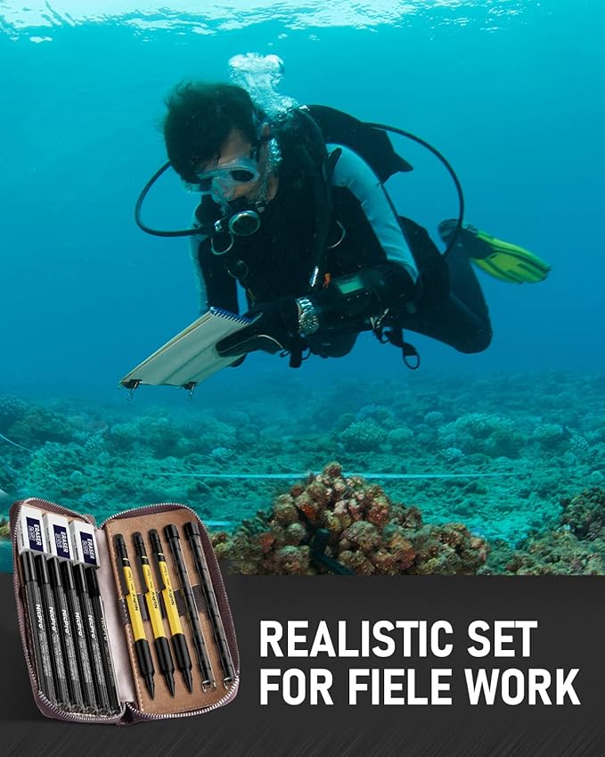 - Awesome Artist Pencil Set:Nicpro drawing mechanical pencil set comes with 3 premium 1.3mm mechanical pencils, 8 tubes of 120mm black resin leads (12 leads/tube), 2 tubes of red & yellow leads, 2 tubes of 9-color leads, 3 soft 4B erasers, 12 eraser refills, and a genuine leather pencil case—everything packed for sketching, drafting, and daily writing.