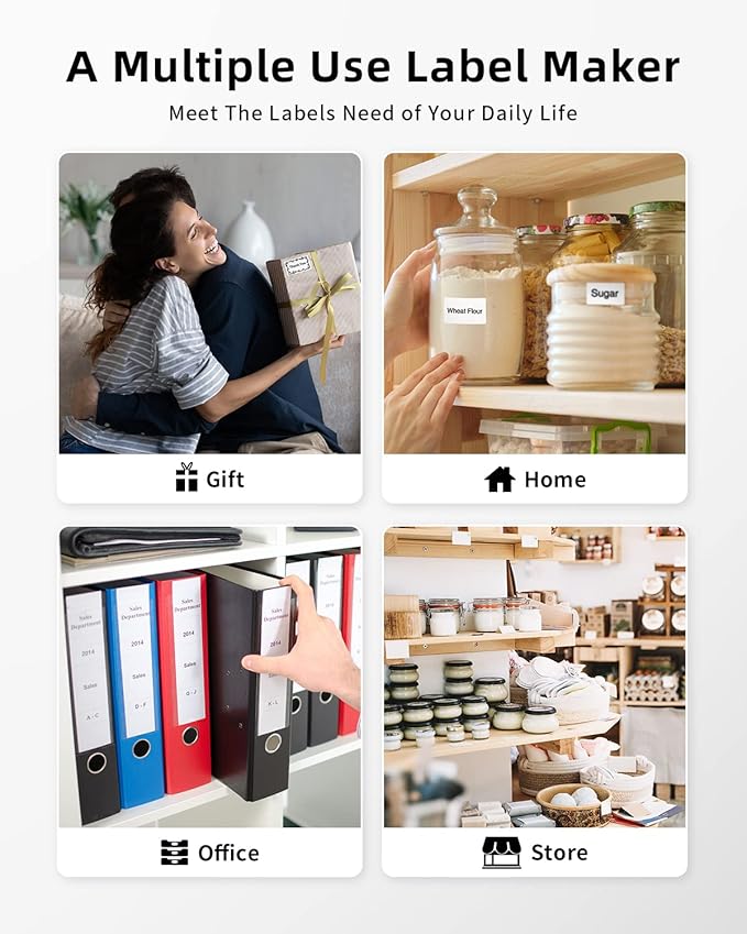 - Get Your Home and Office Organized - Using this portable Bluetooth label maker add a custom labels for all your items, from kitchen , room, files and folders, child supplies to school project supplies and gift bags, easy to labels anything that you need to keep organized