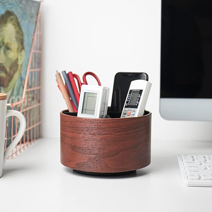 - ✎360° Revolving Design: You can freely rotate the pen holder steadily left and right,unique spinning base design allows easy access to items from any directions.The non-slip pads on the bottom keep it stay in place when rotating.